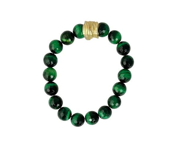 Available in Pink Dyed Tiger Eye, Green Dyed Tiger Eye, and Textured Gold, each bracelet is accented with our signature twisted thread gold-plated bead — tarnish and water-resistant for lasting shine.