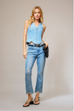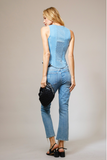 Designed in a soft, sun-washed blue denim this fully lined vest has front boning, front zip closure and center back smocking, this piece is as easy to style as it is to wear. Constructed from soft, washed blue 85% cotton, 14% polyester and 1% spandex denim, pair it with your favorite high-rise jeans, maxi or denim short for a chic look, or layer it over a crisp white shirt or flowy blouse to add a little rebel spirit to your everyday style. The Rugged Corset Vest is the piece you'll reach for when you want to feel effortlessly bold.