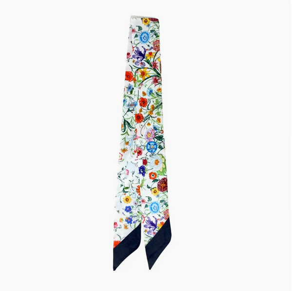 Add a cheerful burst of garden beauty to your outfit with our Floral Twilly Scarf, a slim and stylish accessory that brings color and creativity to your wardrobe. Measuring 34.5" long and 2" wide, this lightweight polyester twilly is the perfect finishing touch for so many looks.